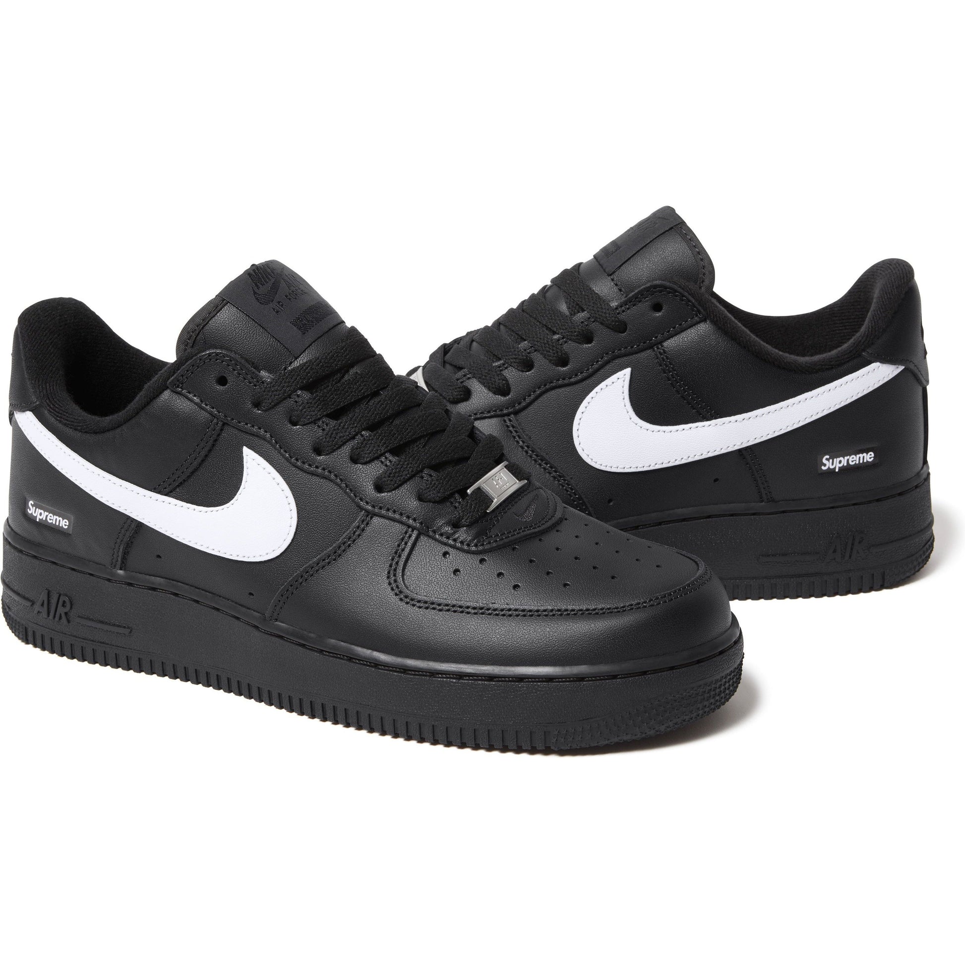 Air Force 1 x Supreme Black / White – buty z pełnoziarnistej skóry, perforowaną przodą, luksusową podszewką DURAPLUSH i detalami z logo. Styl i komfort premium.