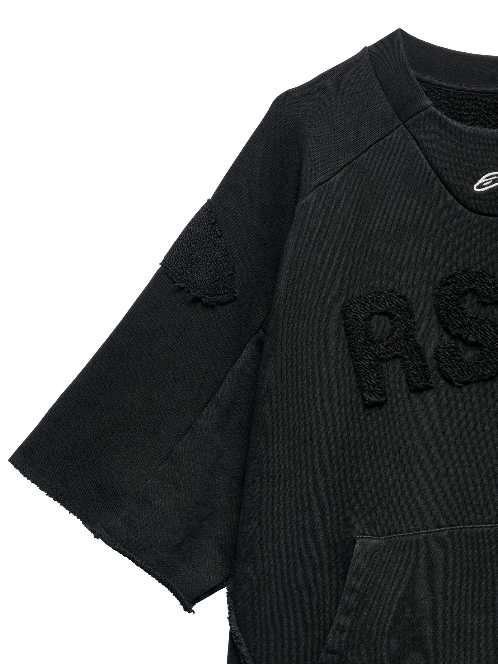 Po wyścigu F1 wejście do „Cool-Down Room” jest rytuałem przejścia. To klimatyzowany salon, który jest wyznaczonym miejscem dla trzech najlepszych kierowców, aby mogli się zrelaksować i ochłonąć zaraz po opuszczeniu swoich samochodów, ale przed wejściem na podium. To tutaj zbierają myśli i rozmyślają nad swoim sukcesem, tuż przed świętowaniem z szampanem. Gdyby RSRV było oficjalnym atelier Cool-Down Room, to byłby to ten strój. Luźny krój, postrzępione krótkie rękawy, średniej wagi polar i kieszenie kangurki sprawiają, że Chill Out Fleece jest wyraźnie wyluzowany. Tonalne, aplikowane litery RSRV z polaru zostały wycięte i ponownie nałożone w odwrotnej kolejności, aby zapewnić subtelne czarne na czarnym oznakowanie i teksturę. Na karczkach ramion również znajdują się odwrócone naszywki z polaru, naśladujące ochronę ramion kurtki motocyklowej. Konstrukcja kołnierza — również inspirowana kurtką motocyklową — zawiera kontrastowe białe haftowane logo Astar.