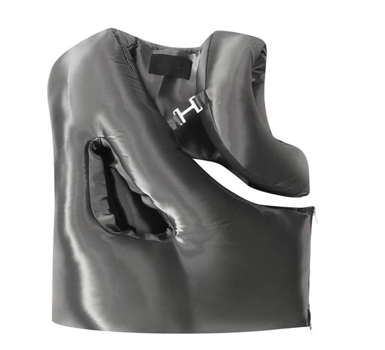 Liquid Metal Vest Metallic is a morphed padded vest in HELIOT EMIL signature liquid metal fabric with H-hook closure.