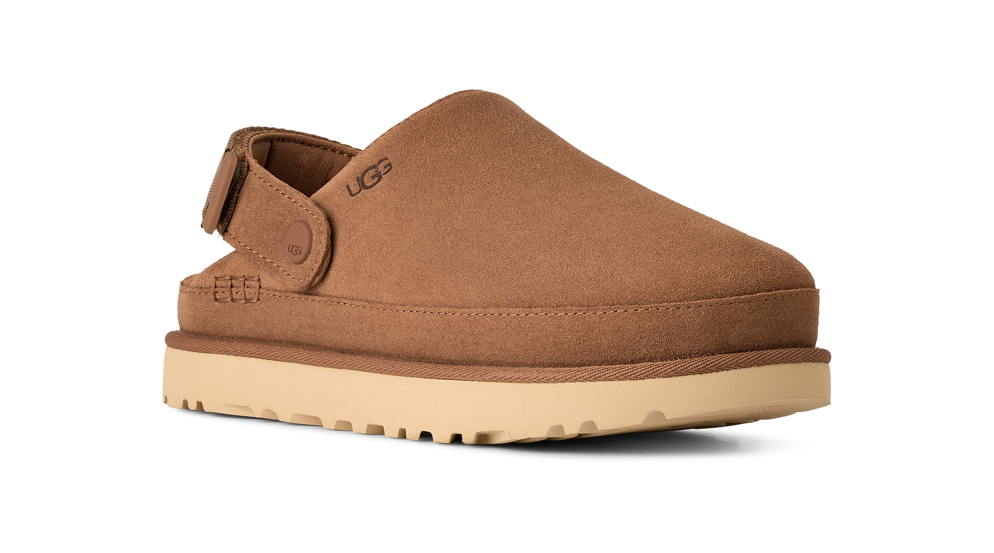 UGG W Goldenstar Clog Chestnut to nowoczesna interpretacja klasycznych chodaków w wydaniu premium od UGG. Model wykonany jest z wysokiej jakości naturalnej skóry zamszowej w kultowym kolorze Chestnut, charakterystycznym dla marki.