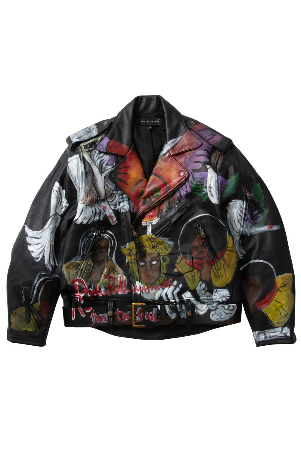 The Star Moto Jacket from Who Decides War by MRDR BRVDO is a luxurious motorcycle jacket crafted from 100% genuine leather. Featuring signature airbrushed graphics on distressed leather, the jacket offers an artistic and unique character.